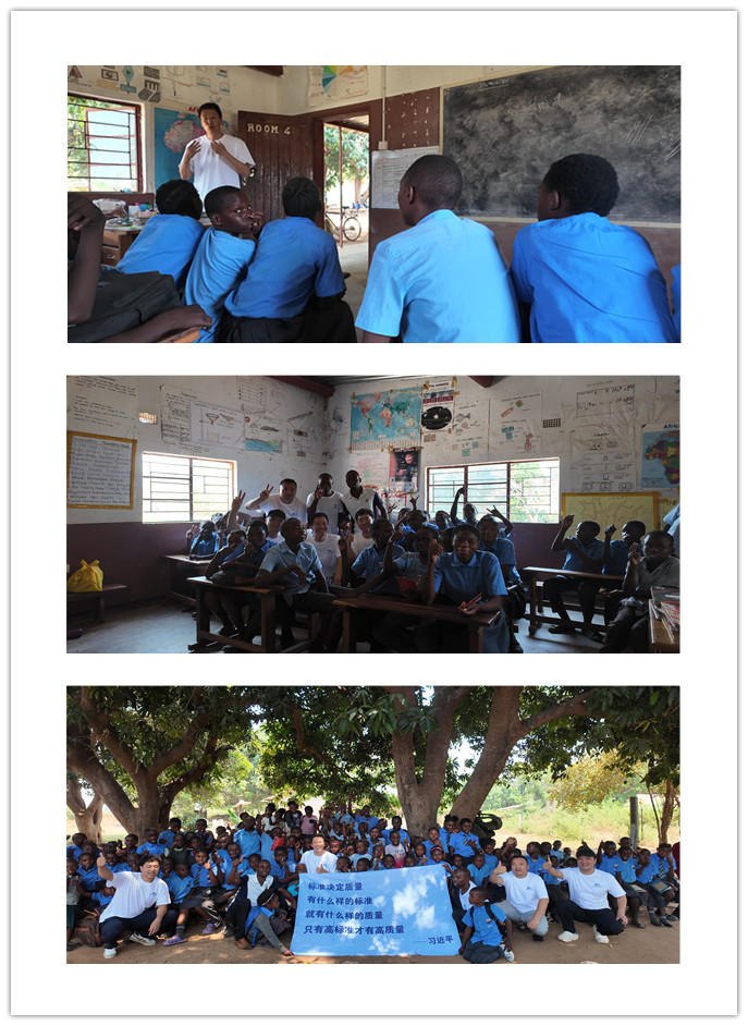 在农场自建的小学校里,农食所所长云振宇研究员与燕艳华副研究员为80余名师生举办了一场别开生面的标准化知识科普讲座,启迪农场少年内心埋下标准“火种”。通过板书讲授、知识问答、辣椒分级互动小游戏等方式,让孩子们在矿泉水包装上找到了赞比亚国家标准,了解了电灯、课桌、粉笔等物品都要符合相应的质量标准。一名学校老师Nyimba说道:“今天的讲座对于孩子们来说一定会终生难忘,他们第一次认识了自己国家的标准,从孩子们脸上洋溢的笑容可以看出,今天的授课在孩子们心中留下了深刻印象。”