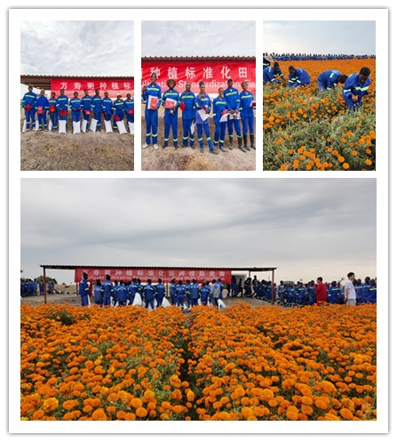 图为万寿菊种植标准化田间技能竞赛