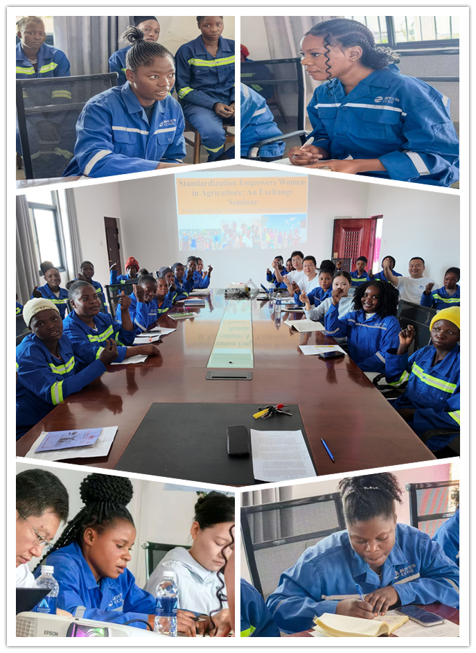 项目特别关注农场女性在标准化实践中的关键作用,组织奇邦博农场的20余名赞籍女员工,围绕标准化技能提升、标准化知识代际传播、标准化促进自我认同等议题开展了标准化赋能农场女性角色重塑专题交流。通过这场知识的碰撞,赞籍女员工对自身的价值尤其是在传播农业标准化知识等方面有了新的认识。参与交流的种植部组长Malikiso女士在交流中表示:“我身边的女性有将近70%都参与到了农场的劳作中,持续的标准化培训对我们来说非常有意义。我们有信心学会这套标准化的技术方法,来更好地管理我们的土地,将这些新知识、新技术传播给更多女性朋友。”