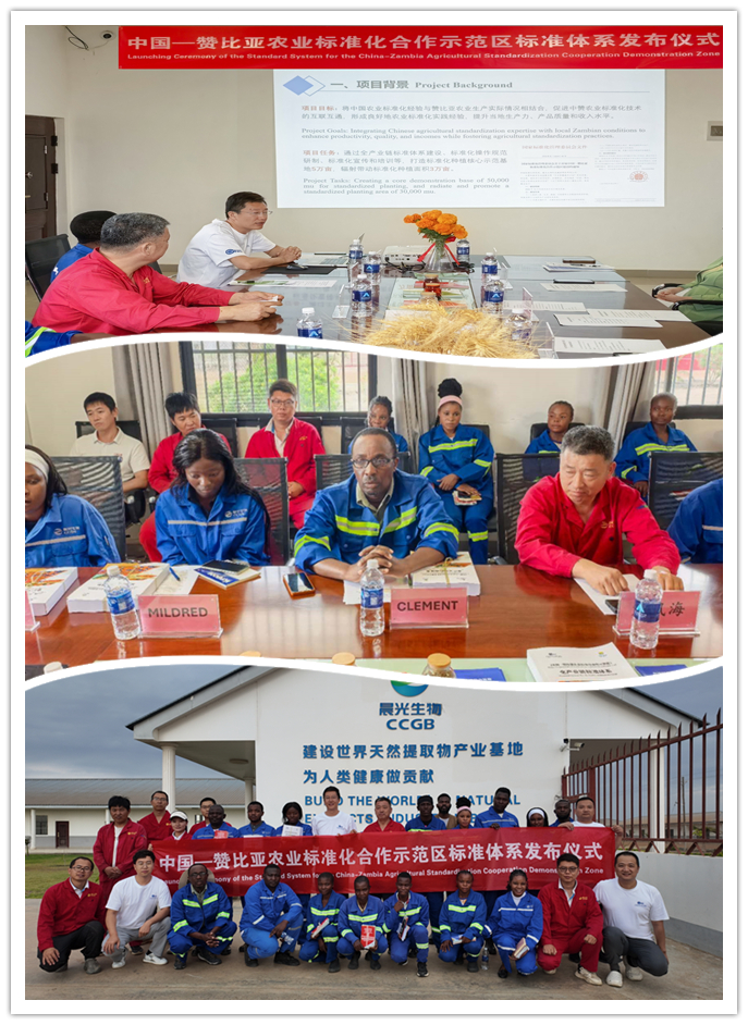 近日,为深入实施中非合作论坛“中非质量提升计划”和“建设10万亩农业标准化示范区”任务,国家市场监督管理总局(以下简称市场监管总局)派出中国标准化研究院(以下简称标准院)专家团队在赞比亚奇邦博农场和锡纳宗圭农场成功实施了“中国—赞比亚农业标准化合作示范区”第三期标准化技术援助任务。