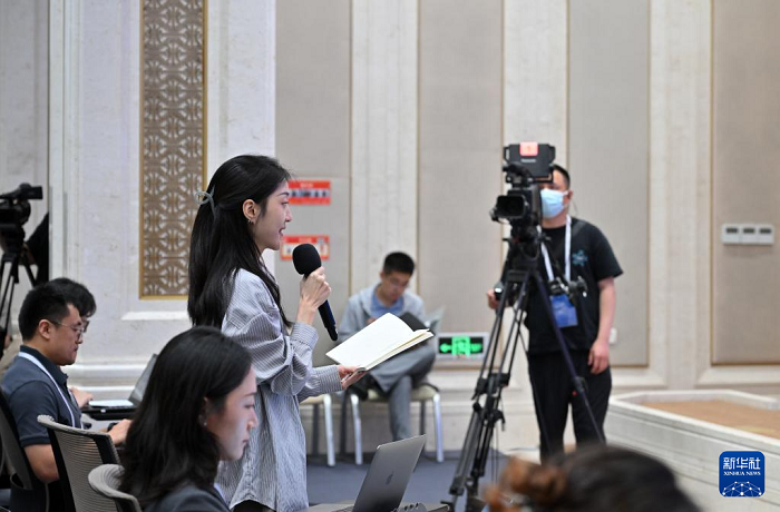 8月22日,国务院新闻办公室在北京举行“高质量完成‘十四五’规划”系列主题新闻发布会,国家市场监督管理总局局长罗文,国家市场监督管理总局副局长柳军,国家市场监督管理总局副局长、国家标准化管理委员会主任邓志勇,国家药品监督管理局副局长杨胜介绍“十四五”时期市场监管高质量发展成就,并答记者问。这是记者在现场提问。新华社记者 金良快 摄